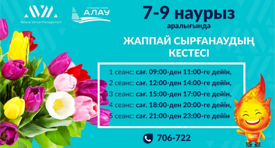 Құрметті «Алау» мұз айдыны сарайының қонақтары, Халықаралық әйелдер күні мерекесінің аясында 7-9 наурыз аралығында жаппай сырғанау таңертеңгі сағ. 09:00-ден кешкі сағ. 23:00-ге дейін болады.
